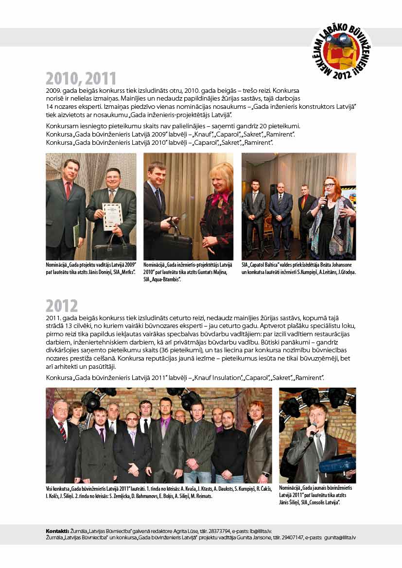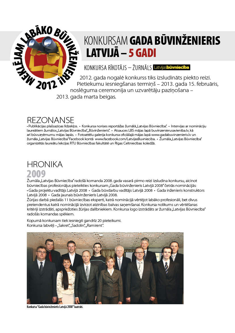2012.gada nogalē konkurss tiks izsludināts 5 reizi.Pieteikumu iesniegšanas termiņš - 2013.gada 13.februāris , noslēguma ceremonija un uzvarētāju apbalvošana - 2013.gada marta beigas.